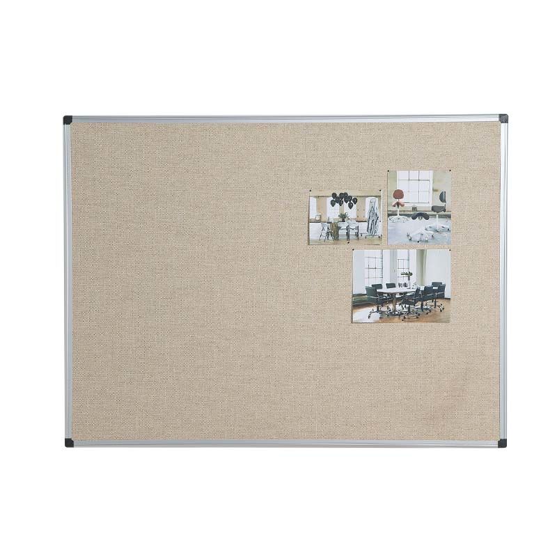 Denna klassiska anslagstavla med linneväv och aluminiumram smälter in i nästan vilken miljö som helst.