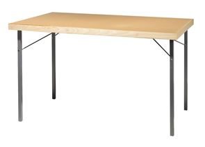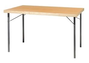 Hopfällbart bord Partybord med oljehärdad träfiberskiva eller laminatskiva. Hopfällbara bord i stark konstruktion som tål tuff hantering. Enkelt plastbeslag undertill, som gör borden lätta att fälla upp och ner. Plats att sitta även på kortändan då bordet inte har några mellanstag mellan benen. Ben i metall och ram i massiv bok.