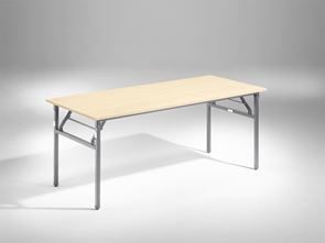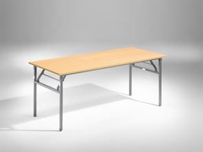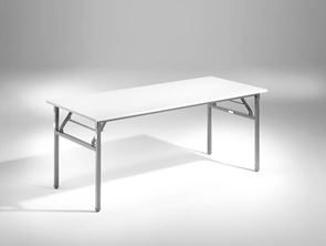 Fällbord med laminatskiva och kraftigt stativ med ställfötter. Svartlackerat bordsunderrede i 30x30 mm stålrör, fälls upp eller ihop med ett enkelt handgrepp. Staplingsdistanser ger bra skydd av bordsskivan samt säker och stabil stapling.