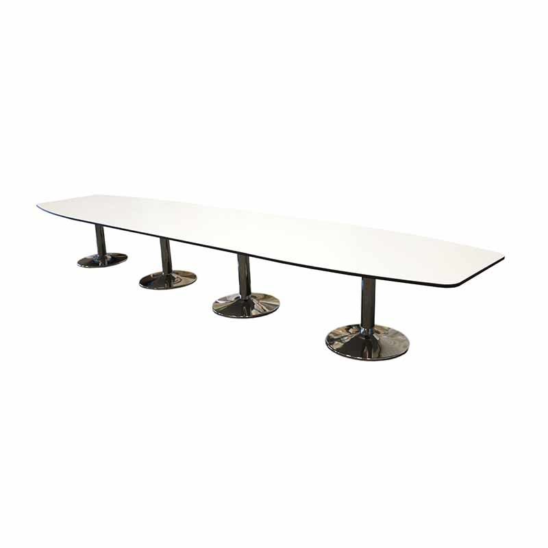 Konferensbord Strike för 16 personer, 5200x1200 mm, vit/krom. Konferensbord i båtformad design med plats för 16 personer.