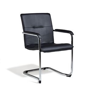 Sitsen och stolsryggen är klädd i skinn och slitytorna, baksida av stol och armstöd är klädda i konstläder. Stolens underrede är gjort av kromat stålrör. En konferensstol i snygg design som ger ditt konferensrum ett lyft. Bekväm att sitta i och mycket hållbar.