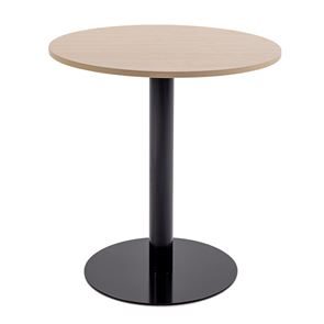 Stabilt runt cafébord med silverfärgat pelarstativ. Bordsskiva Ø 700 mm i björkfanér.