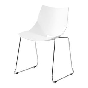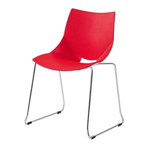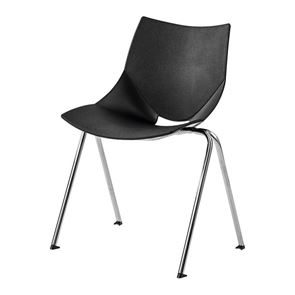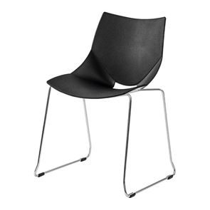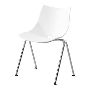 Modern och bekväm lunchstol i åtta färger. Helgjuten plaststol med eleganta linjer och formspråk. Stolen Jonas finns med två olika kromade underreden, benstativ eller medar.