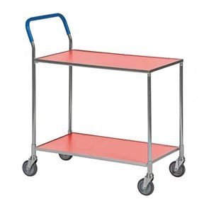 Bordsytan på 760x430 mm har laminatskivor som gör det lätt att hålla rent. Vagnen har smidiga hjul, med länkhjul som gör att du enkelt kan styra den, även i trånga utrymmen. Rörramen är förzinkad och har ett plastklätt bygelhandtag.