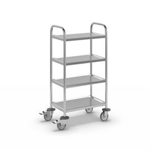Rostfri serveringsvagn Luna. Universell användning i kök och matsalar eller på kontor. Förstärkt botten med stoppkant runtom för extra stabilitet.