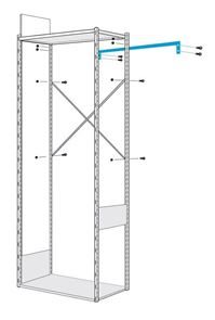 Ryggstag till Lagerhylla . Krysstag är vanligast för att uppnå sidostabilitet. I situationer där du behöver en genomgående hylla (till exempelvis rygg mot rygg och vill kunna utnyttja hyllor på båda sidorna) och krysset således är i vägen kan du byta detta mot ett rakt ryggstag, som placeras på båda sidorna på hyllsektionen.