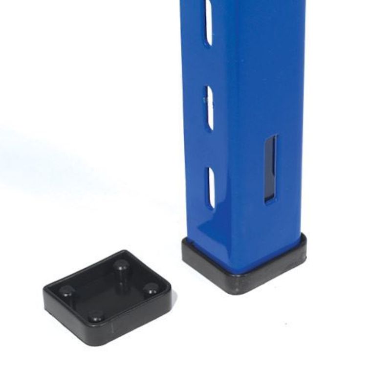 Golvskoning till Lagerhylla . Golvskydd som skyddar golvet mot repor. Används till vertikal stolpe och hel stålgavel. Bygghöjd 2 mm.