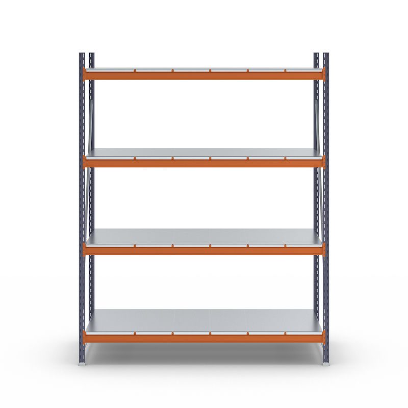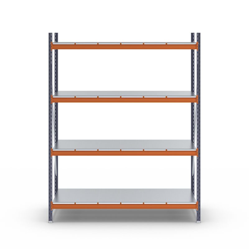 Hyllställ Aleyna, belastning per sektion 1600 kg, med stålhyllor, HxBxD 2500 x 1900 x 800 mm, grundsektion.
