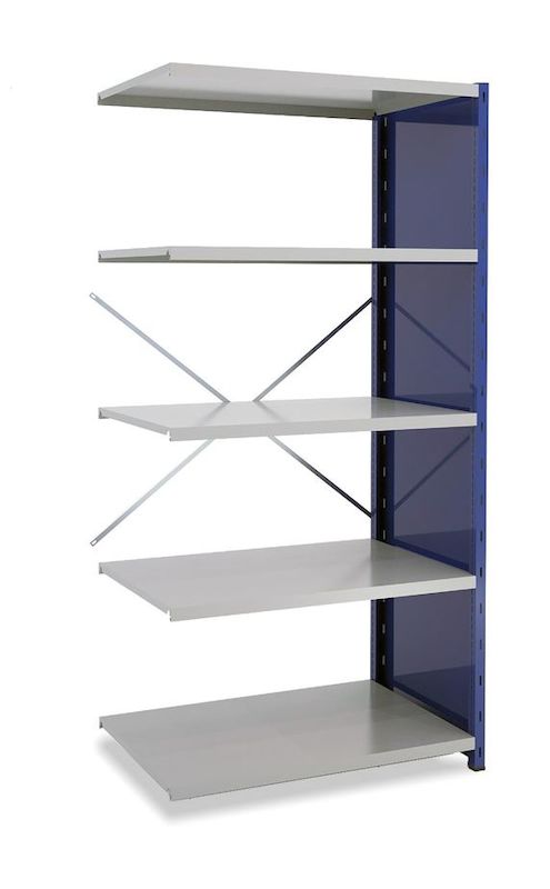 BeskrivningLagerhylla Blå/Grå, täckt gavel, utbyggnad, BxDxH 965x600x1960