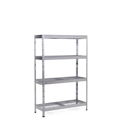 Lagerhylla Glomma, BxDxH 1200x450x1800 mm. Stabil helgalvaniserad stålhylla med galvade trådhyllplan. Enkel att montera, helt utan skruvar och verktyg.
