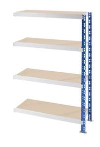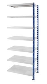 Lagerhylla Jolene. Hyllgavlarna står på galvaniserade fotplattor (98 x 51 mm) som ökar den angivna hyllhöjden med vardera 1 mm. Skruv och plugg till fotplattorna ingår ej.