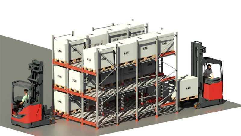FIFO-principen (first in, first out) ser till att pallarna står redo i rätt ordningsföljd. Stället lastas med pallar från den ena sidan, och pallarna lossas sedan från ställets motstående sida.