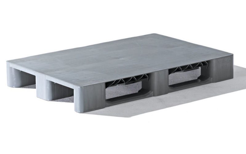 Plastpall med medar, EUR LxB 1200x800 mm, max 1500 kg, grå. Med täckt överplan och räfflat underplan. Tre utbytbara längsgående medar. Lätt att rengöra. Hanterbar från 4 sidor. Temperaturbeständig från –30 °C till +70 °C. Av högvärdig återvunnen polyeten. Maxbelastning från 1500 kg till 2500 kg, 400 kg till 1250 kg i pallställ. Mängdrabatt vid köp av 10 st eller fler.