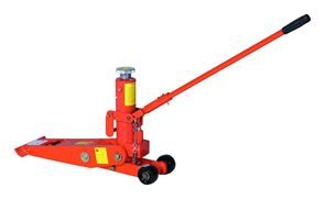 Hydraulisk kraftig domkraft med tvåpositionslyftklack. Domkraften är försedd med hjul för enkla och snabba transporter.