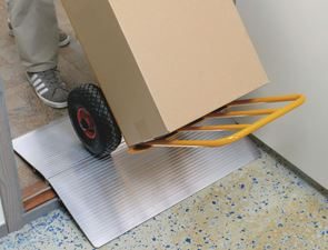 Tröskelbryggan är ledad på mitten vilket gör att den klarar tröskelhöjder på 30-70 mm.