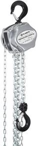 Tack vare det höga korrosionsskyddet kan lyftblocket användas även under krävande förhållanden. Den härdade och galvaniserade lastkedjan enligt DIN EN 818-7-T garanterar lång livslängd och säker drift. Vid behov kan en längre kedja enkelt dras in genom den lättåtkomliga kedjeupphängningen. Det kullagrade kedjehjulet och den gjutna krokspärren gör att lastkedjan går jämnt och ger extra säkerhet vid lyft och förflyttning av tunga laster.