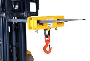 Gaffelkrok Kirveli. Kraftigt lyftblock för truckgafflar. Omvandlar snabbt en gaffellyft till mobilkran.