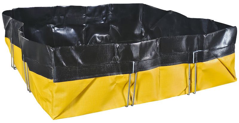 Uppsamlingskärl, hopvikbart Claudia, PE, svart/gul, uppsamlingsvolym 330 l. Hopfällbar spillbassäng av