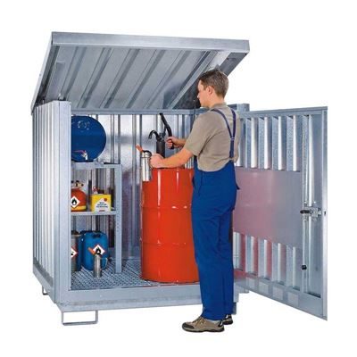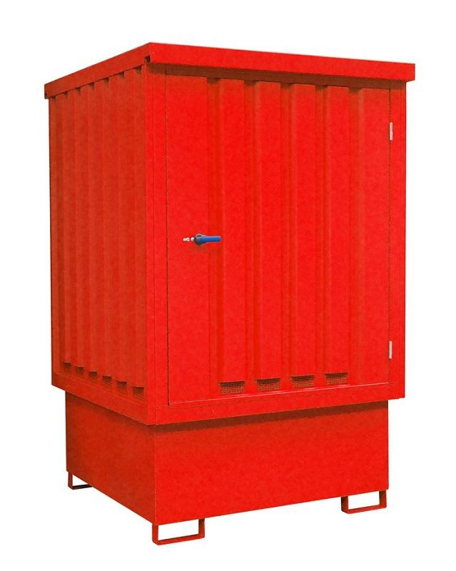 Miljöskåp för 2-4 x 200-litersfat, eller 1000 liters IBC. För förvaring av brännbara vätskor i GHS-kategori 1 – 3 utomhus och vattenskadliga vätskor i GHS-kategori 1 – 4 inom- och utomhus.