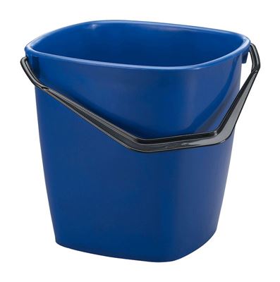 Kvadratiska hinkar i plast med greppvänligt handtag. 14 liter. blå eller röd färg.
