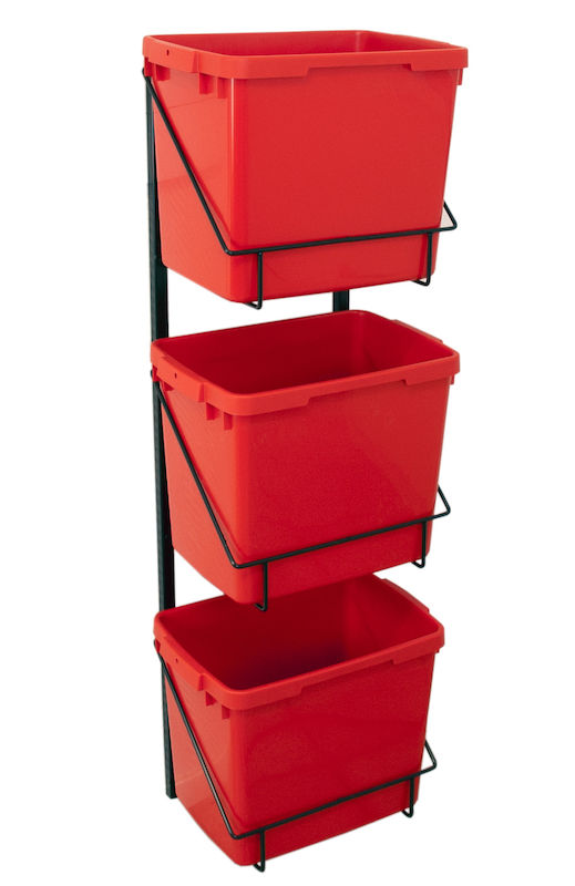 Sorteringsställ för 3 backar, väggmonterad, HxD 1135x290 mm. Väggmonterat stabilt sorteringsställ som enkelt skruvas upp på väggen och därefter monteras sorteringsbackarna smidigt på plats.
