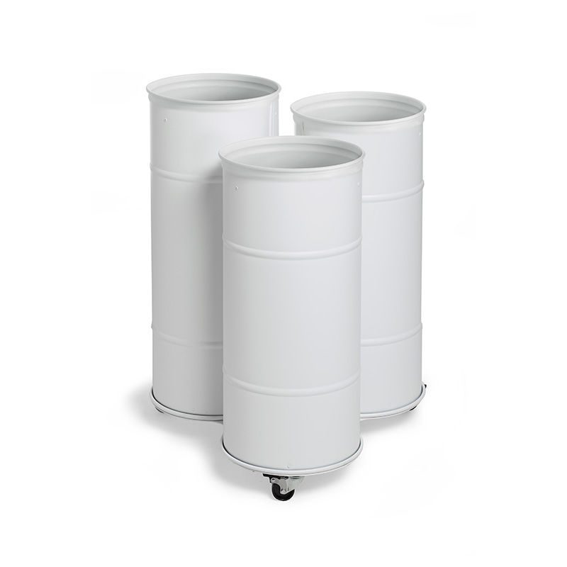 Soptunna Brooklyn Bin, H 730/780/830 mm, hjul, trippel utan lock, vit. En tunna med hög kvalité i tidlös och klassisk design. Tunna ø 330 eller 400 mm av stålplåt, pulverlackerad med matt färg. Säckhållare i tunnan, anpassad för 70 liters säckar. Finns som singel/dubbel/trippel i 3 olika färger.
