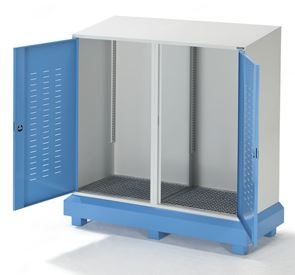 Kemikalieskåp Vito. Miljöskåpet från eurokraft pro är en robust och säker lösning för lagring av kemikalier i fat och små behållare. Den förzinkade och pulverlackerade stålplåtskonstruktionen garanterar långvarigt skydd och stabilitet.