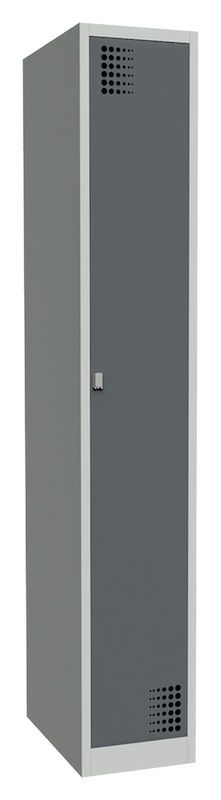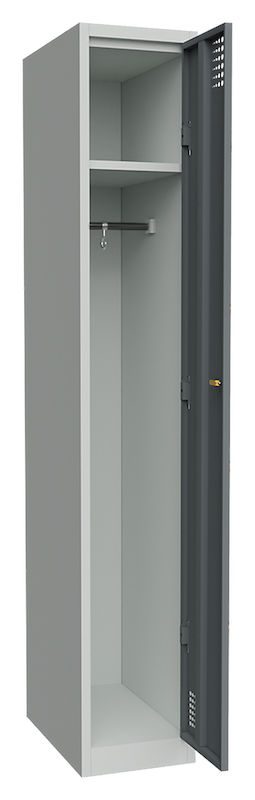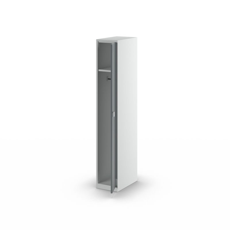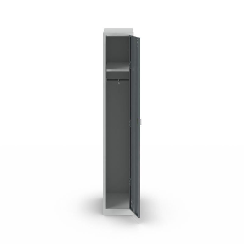 Stålskåpet Alvina har en praktisk hatthylla med två klädstänger inklusive krokar och en perforerad dörr som säkerställer optimal ventilation av dina kläder.