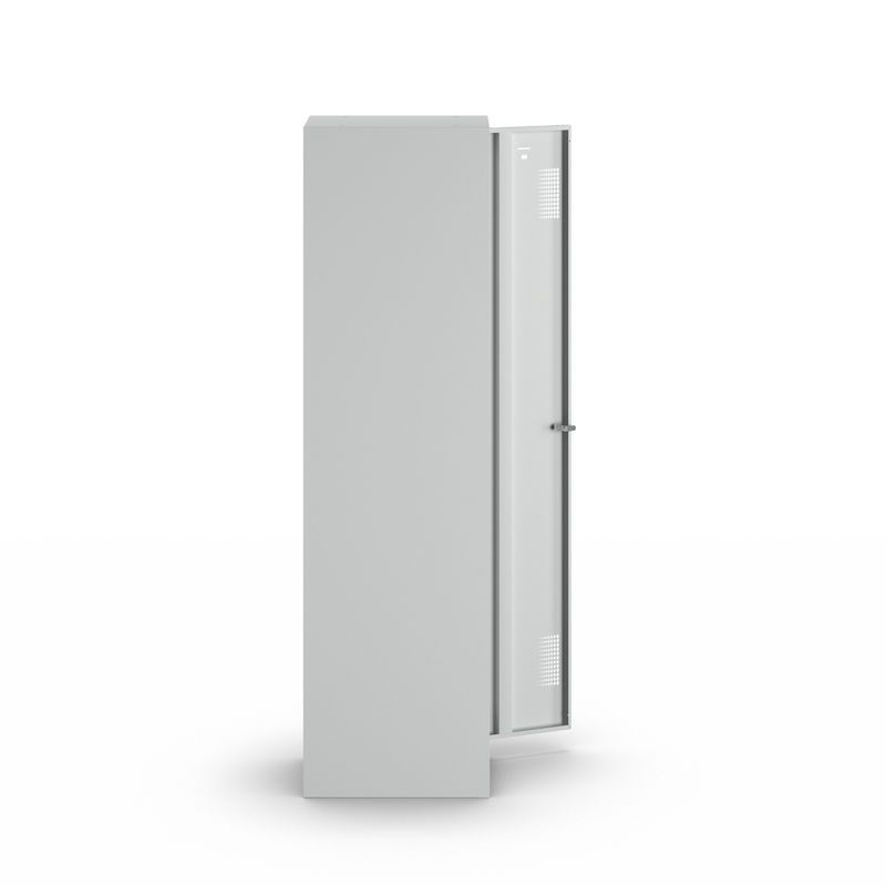 Det är tillverkat för att uppfylla höga krav och passar som personalskåp för användning i verkstäder, lager, idrottsanläggningar och andra professionella miljöer. Tack vare det robusta materialet klarar stålskåpet även intensiv användning och är en långsiktig lösning som håller i många år. Den praktiska perforeringen sörjer för optimal ventilation inuti skåpet och förhindrar obehaglig lukt.
