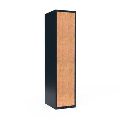Stryktåliga dörrar i högtryckslaminat som klarar tuffa miljöer. Plant tak underlättar för inbyggnad eller skapar en extra förvaringsyta ovanpå skåpet.