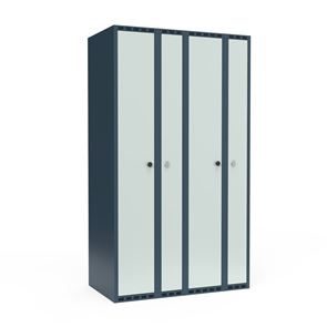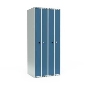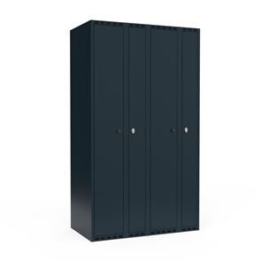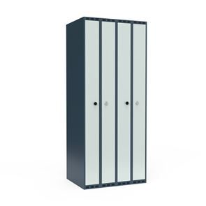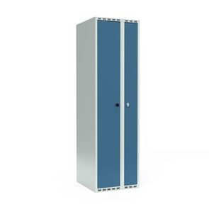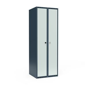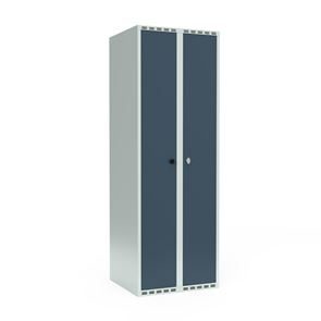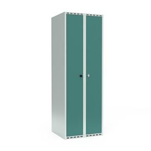 När du har behov av att separera arbetskläder från privata är klädskåp med pardörrar en naturlig lösning. Klädskåp med pardörrar ger dig två fullhöjdsfack med hatthylla och klädstång men bara ett lås för dörrarna.