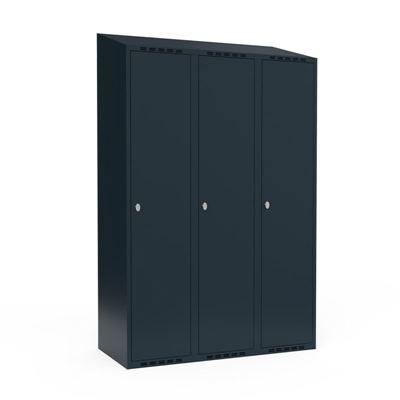 Klädskåp Fydor SMG, 1200 x550x1900 mm, 3 dörrar i 3 skåp, sluttande tak, antracit. Med Fydor-serien får du ett klassiskt men modernt helsvetsat omklädningsskåp med hög kvalitet och säkerhet.