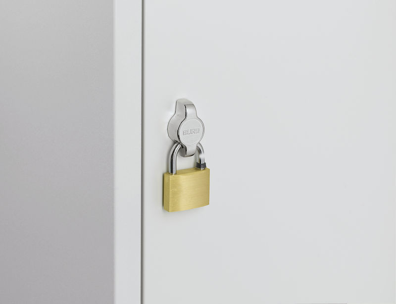Välj önskad bredd, dörrfärg och låstyp – cylinderlås eller en anordning för hänglås (bygel 6 – 8 mm) utifrån dina utrymmeskrav och behov.