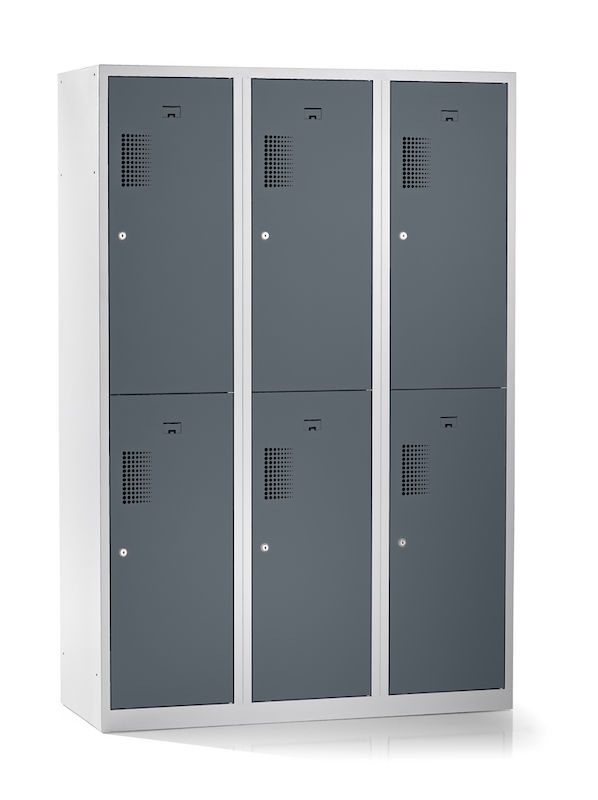 Klädskåp med två fack Amsterdam, 3 sektioner, bredd 1200 mm, 6 fack, ljusgrå/basaltgrå.