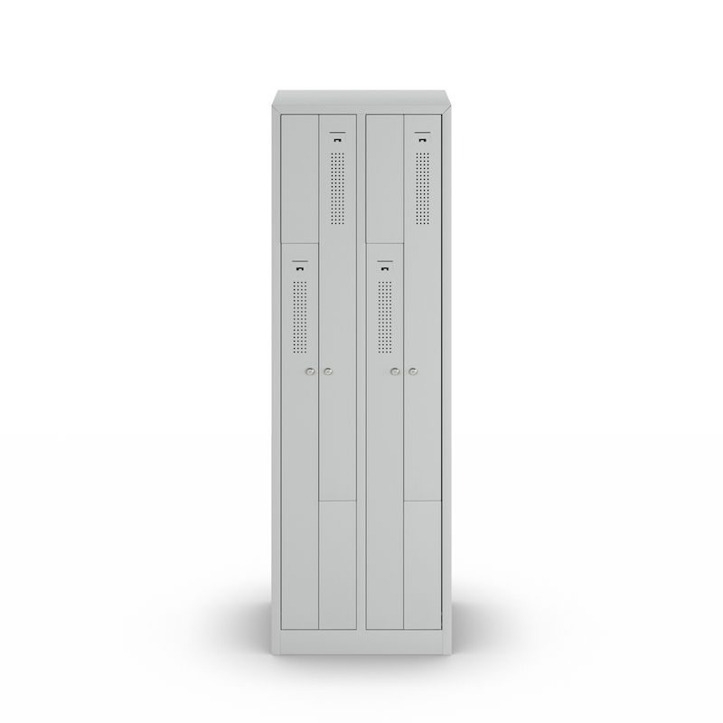 Ett z-skåp kombinerar platsbesparande design med genomtänkt funktionalitet. Det här stålklädskåpet passar perfekt i omklädningsrum på företag och fritidsinrättningar. Det har två skåpfack på samma yta som ett skåp. Den intelligenta z-formade facklayouten erbjuder effektiv klädförvaring utan att kompromissa med användbarheten.