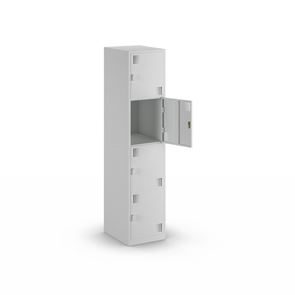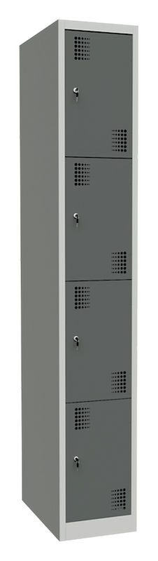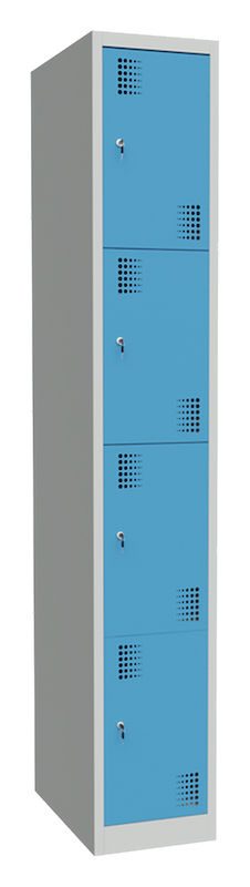 Småfacksskåpet har 4 rymliga fack ovanför varandra och erbjuder en genomtänkt förvaringslösning för olika föremål i omklädningsrum eller personalutrymmen i kontor, skolor, offentliga inrättningar eller i industri- och tillverkningsmiljöer.