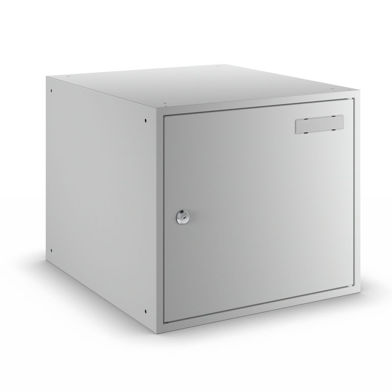 Småfacksskåp Ante, HxBxD 350 x 400 x 450 mm, ljusgrå RAL 7035. Tillverkat av pulverlackerad stålplåt. Alltid med ljusgrå stomme. Låsbart med cylinderlås, inkl. 2 nycklar. Etikettstorlek HxB 20 x 95 mm.