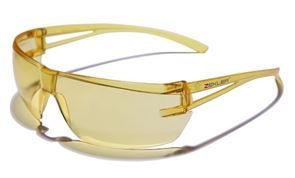 Skyddsglasögon Zekler 36. Lätta skyddsglasögon i stilren design med tunna skalmar. Vikt 16 gram. Tunna skalmar och tight passform för ökad komfort och skydd i kombination med hörselkåpor. Klar och gul = UV-skydd. Grå lins = UV400. Alla färger är har repskydd och imskyddad lins.