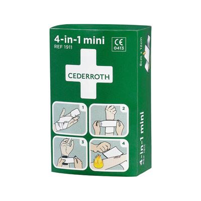Blodstoppare Cederroth Mini. Ett sterilt universalförband med fyra funktioner: