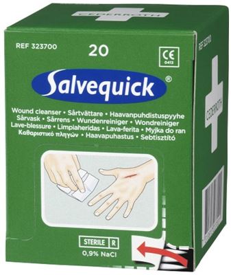 Salvequick sårtvättare ersätter bomull och sårlösning i flaska.