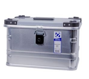 Aluminiumlåda Viktor. Robusta transportlådor i aluminium med förstärkta lock och kraftig botten. Förvaringsboxarna är avsedda för industriella eller i allmänhet tuffa miljöer. De är utrustade med skyddande hörnbeslag som även underlättar stapling.