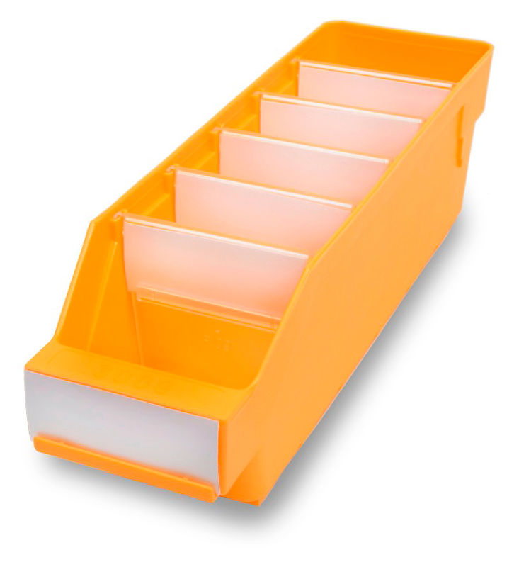 Tillbehör: Transparenta avdelare, hållare inklusive etikett och lådstopp.