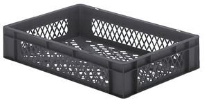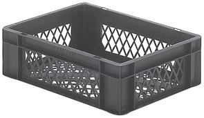 Plastback Teff med perforerad sida och botten. För så gott som varje behov på lagret, i produktionen eller vid transport. Av högvärdig, livsmedelssäker polypropen (PP-plast) med hög stabilitet.