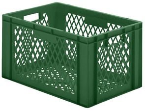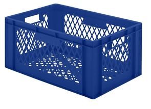 Storleken anpassad till pallmått 1200x800 mm och 800x600 mm i Euroformat. Lämplig för rullbanor. Enkelt stapelbar även med lock. Finns i flera olika storlekar.
