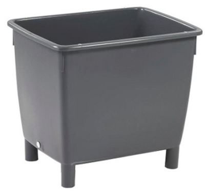 Plastbehållare Flinta, med fötter, vattentank, volym 210 l, grå. Temperaturbeständig från -30 °C till +70 °C. Beständig mot de flesta syror och alkalier (begär information). Lätt att rengöra med släta väggar. Med rostfria förstärkningslister under kanten. Behållarna kan sättas i varandra och staplas med lock. Av UV-stabil, ren HD-polyeten. Ljussäker och väderbeständig.