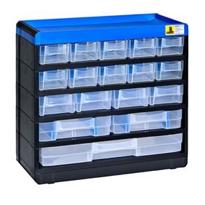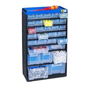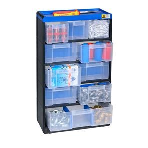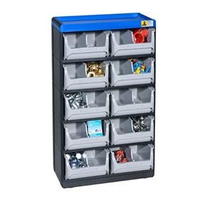 Sortimentsskåp Terris. Proffesionellt sortimentsskåp för en allsidig förvaring. Stor variationsmöjlighet med både små och lite större lådor. Skåpet finns i två olika storlekar och med ett antal olika lådindelningar. Levereras komplett med avdelare.