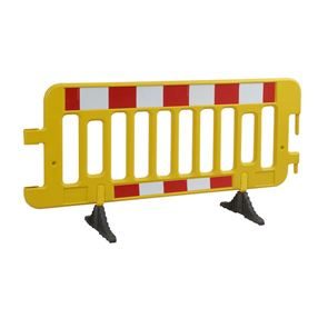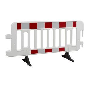 Avspärrningsstaket Sigrun. Avspärrningsstaket för säker avspärrning på byggarbetsplatser, vägarbeten, lager och industrier. Sigrun är tillverkad av genomfärgad UV-beständig plast med reflekterande folie och vridbara fötter vilket gör att den kan stå säkert både ute och inne. Snabb och enkel montering, staketen krokas ihop för att bygga rader eller vinklar och spärra av ytor. Med sina vridbara fötter tar Sigrun upp lite plats vid transporter. Ingen statisk elektricitet. Mängdrabatt vid köp av 5 eller fler. Finns i två olika färger.