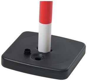 Avspärrningsstolpar av plast med fyllbar fot i plast, foten kan fyllas med sand eller vatten för bättre stabilitet. Avspärrningsstolparna passar lika bra inomhus som utomhus och passar bra när du snabbt och enkelt behöver spärra av ett område tillfälligt.