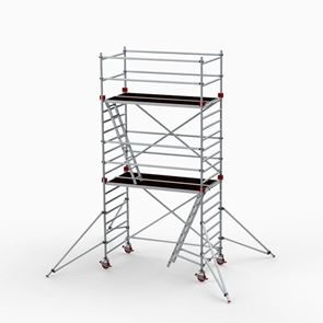 Rullställningar Pro. Rullställning PRO är en stabil och rejäl rullställning konstruerad för daglig användning. Tillverkad enligt arbetsmiljöverkets krav på säkerhet och funktion. Vikbar aluminiumställning som är perfekt för hantverkare och byggarbeten. Grundsektionen består av en vikbar rörställning i aluminium, en plattform med lucka, säkerhetsräcke och fyra hjul.