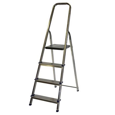 Trappstege 320, 4-steg. Praktisk aluminiumstege för allmän användning. I utfällt läge fungerar plattformen som låsning och ger stegen en god stabilitet och extra säkerhet.